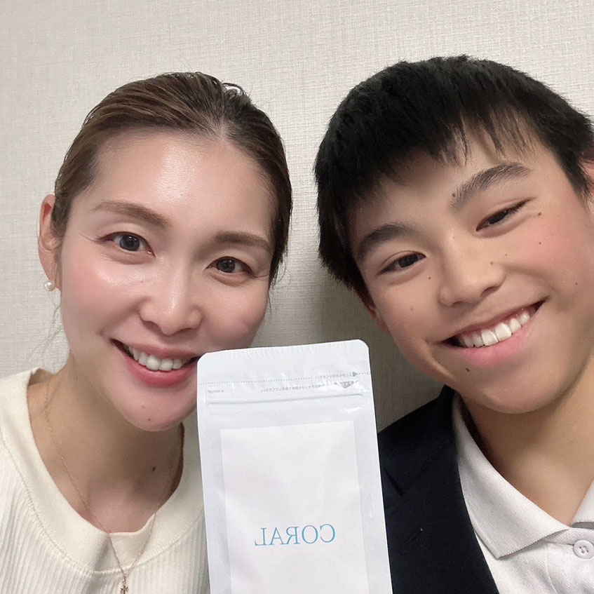 5年前から酷い生理痛に悩み鎮痛剤が手放せませんでしたが、CORALで痛みが軽減し薬なしで過ごせるように!夫や息子も花粉症・鼻炎・喘息に悩んでいましたが、薬や吸入器なしで快適に過ごせるようになりました。息子のニキビにも変化が見え始め、家族全員で驚きと喜びを実感!今後も家族で安心して続けていきたい大切なサプリです。
